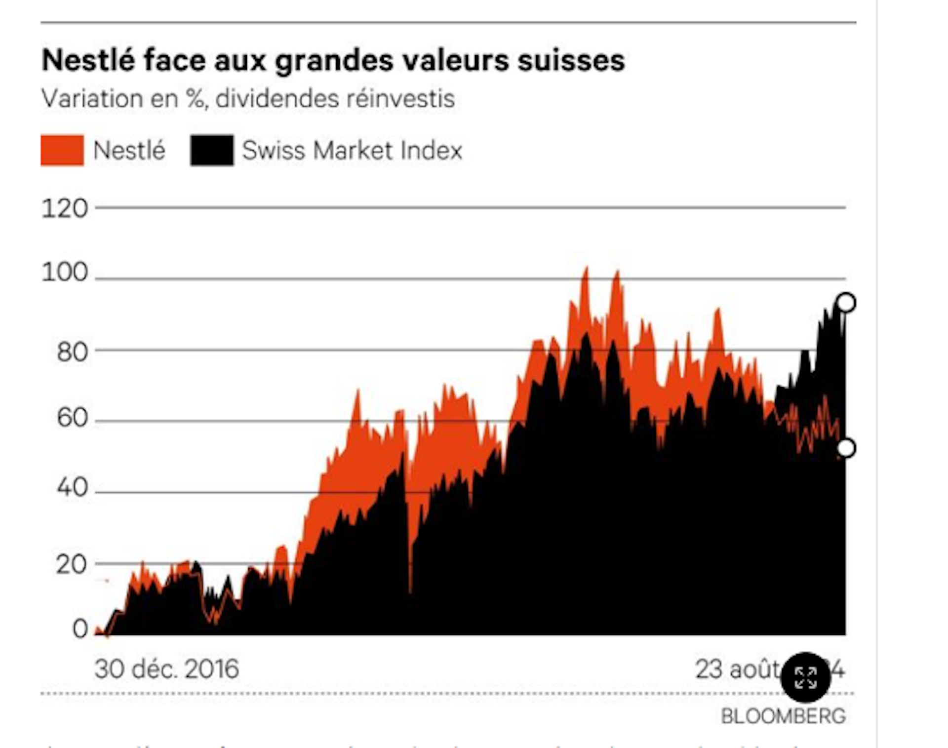**L’action Nestlé comparée aux grandes valeurs suisses